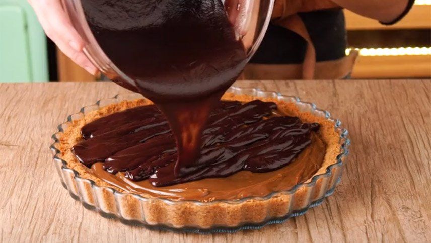 - Verter la crema de chocolate por encima del dulce de leche. Refrigerar 2 horas antes de servir.