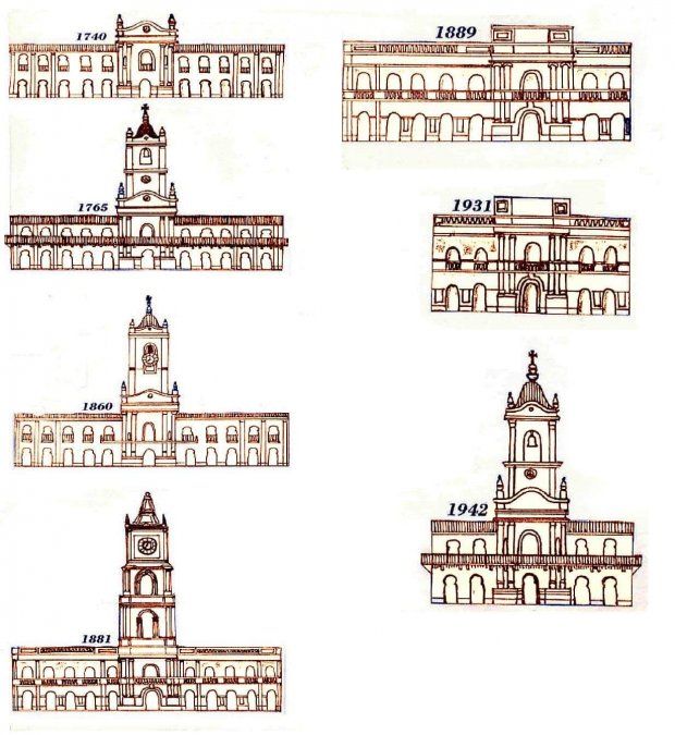 Su primera fachada fue la original con la que se lo construyo en 1765, en el lugar en el que se había erguido una modesta Casa de Gobierno, por orden de Juan de Garay, en 1580.