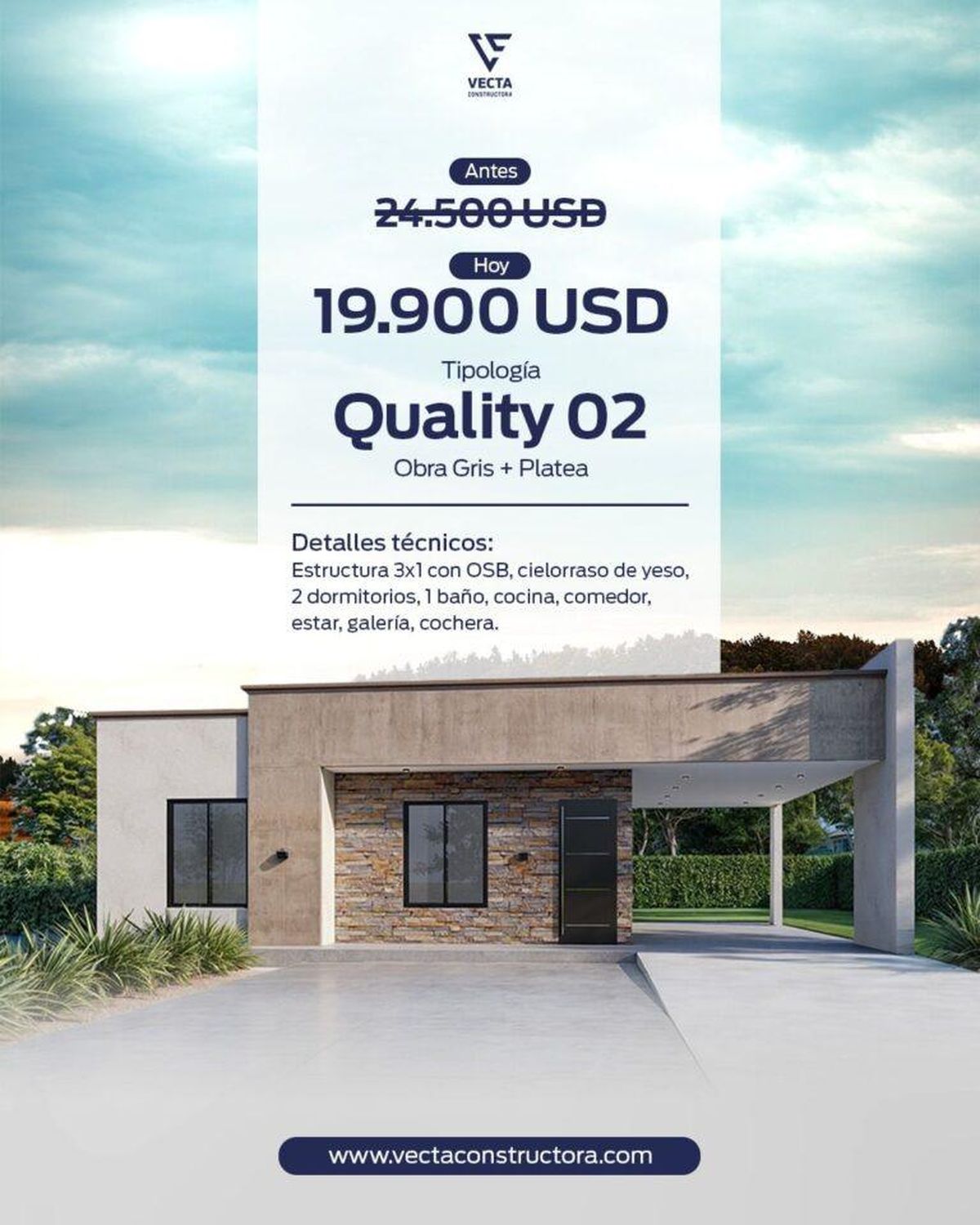 Una de las casas prefabricadas que se ven más cómodas y modernas es promocionada en el sitio web de Vecta Constructora y está rebajada en 5.000 dólares, quedando a un valor 19.900 dólares.