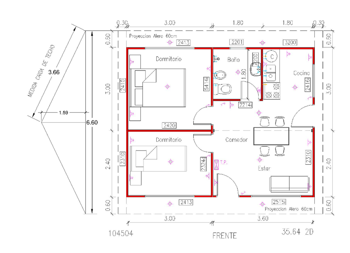 Esta casa prefabricada, según la descripción, es de 35,64 metros cuadrados.