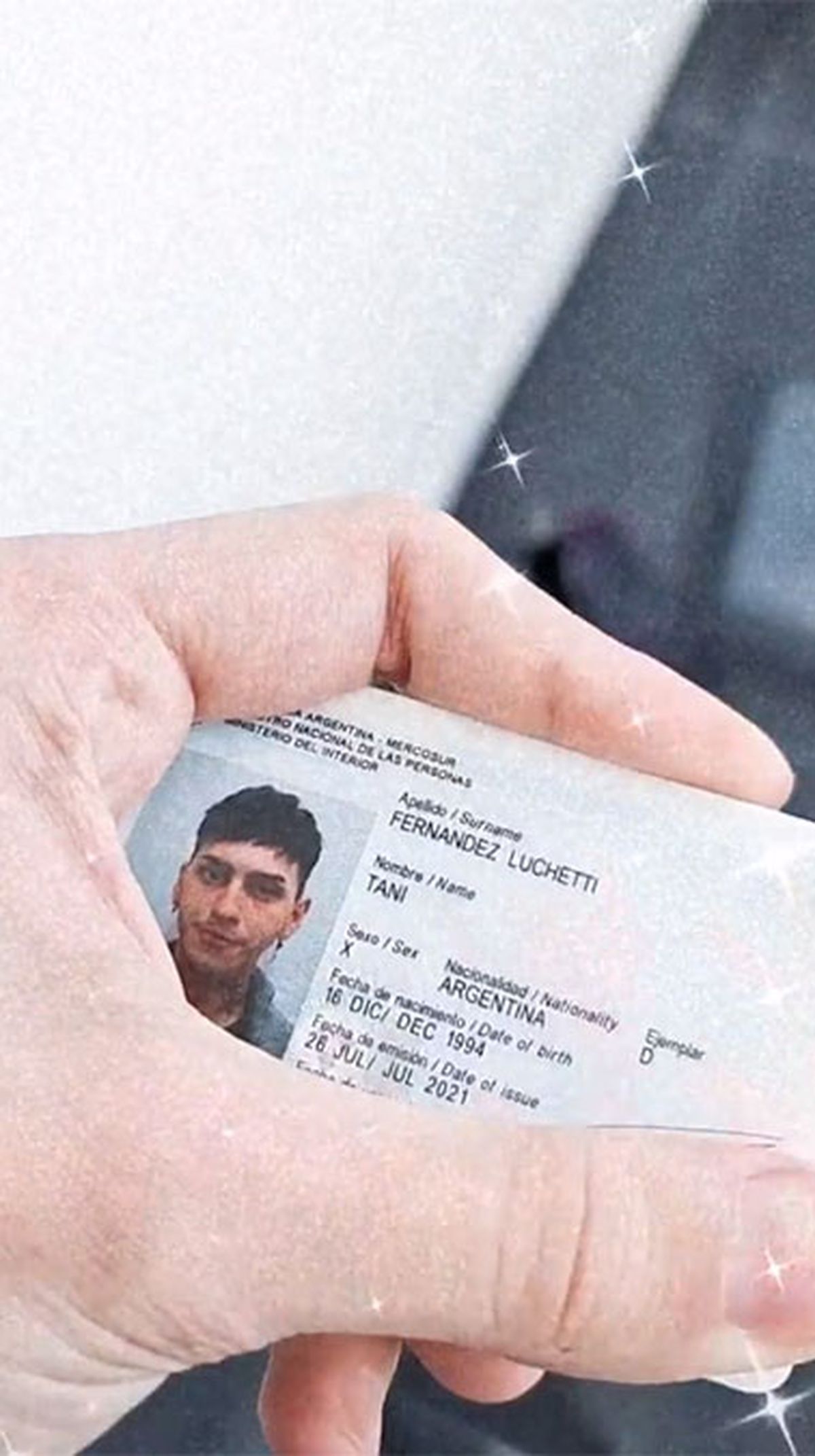 En su cuenta de Instagram compartió unas historias y mostró que su nuevo nombre es Tani Fernández Luchetti, antes se llamaba Estanislao. Además aclaró que "un plástico no define su identidad" pero defendió el avance.