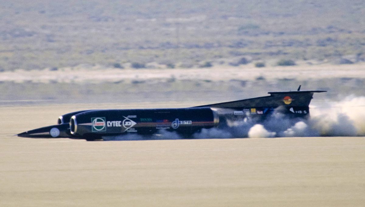 El auto más rápido del mundo alcanzó una velocidad de 1.227 km/h y rompió la barrera del sonido