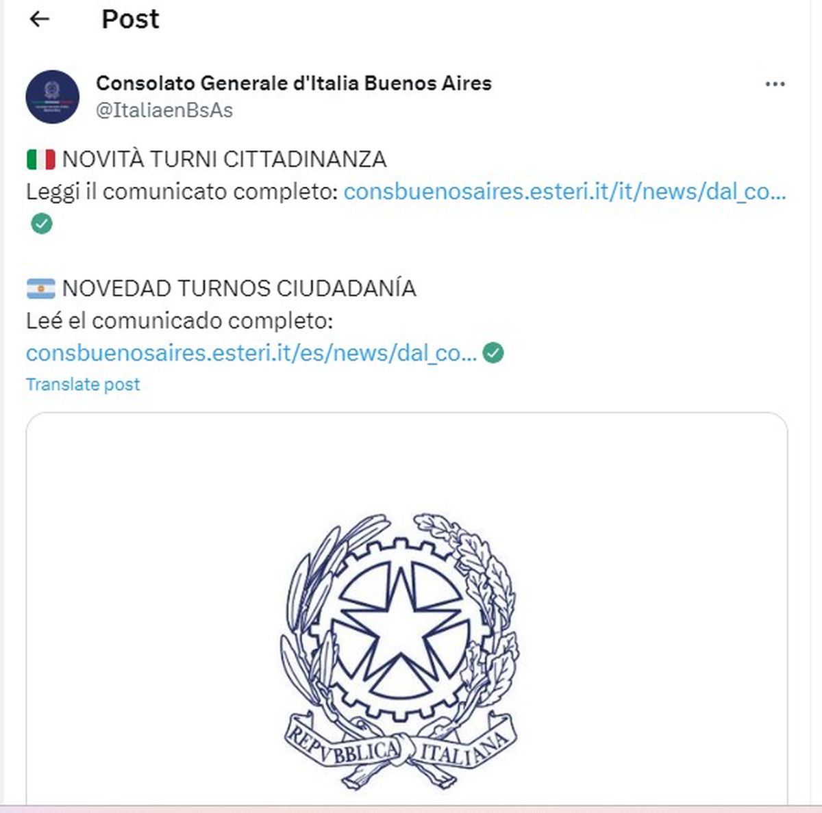 El Consulado de Italia anunció cambios en el sistema de turnos para obtener la ciudadanía