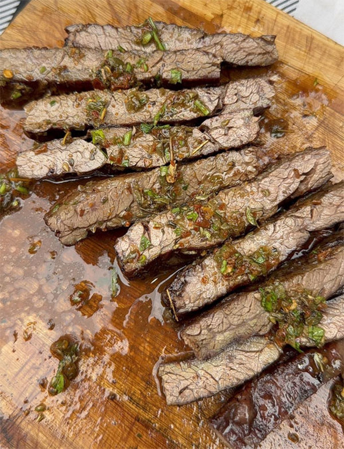 - Se le puede agregar algún chimichurri especial, elaborado con aceite de oliva, perejil y ajo picado, diferentes hierbas y las especias que uno quiera.