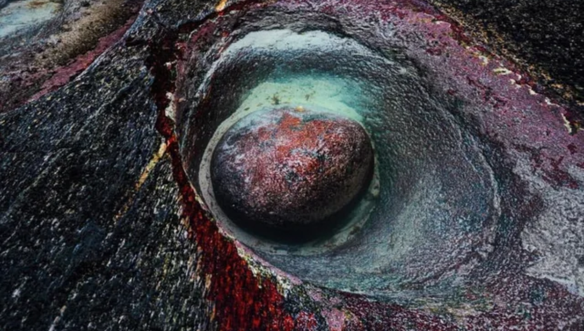 Lo curioso de todo esto, es que el ojo de dragón en cuestión tiene una forma diferente dependiendo del día y las mareas del momento. Con sus 1,5 metros de ancho, este efecto se produce gracias a las algas que rodean al pozo.