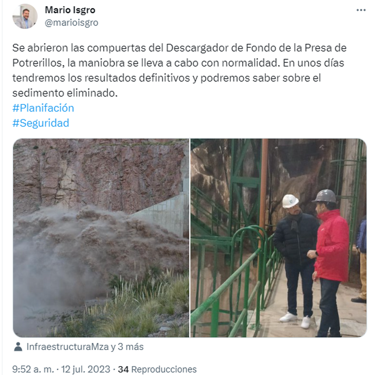 Este miércoles comenzaron las tareas de mantenimiento en el descargador de fondo del Dique Potrerillos que se realizan periódicamemente a cargo del Consorcio de Empresas Mendocinas para Potrerillos S.A. (Cemppsa) y son coordinadas por la Dirección de Hidráulica.