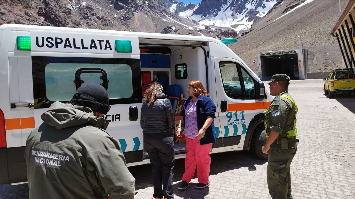 Los rescatistas argentinos se unieron a sus colegas chilenos para llevar a cabo una compleja operación de traslado. Utilizando una camilla especial, la turista fue evacuada hasta el complejo "Los Libertadores" en Chile.