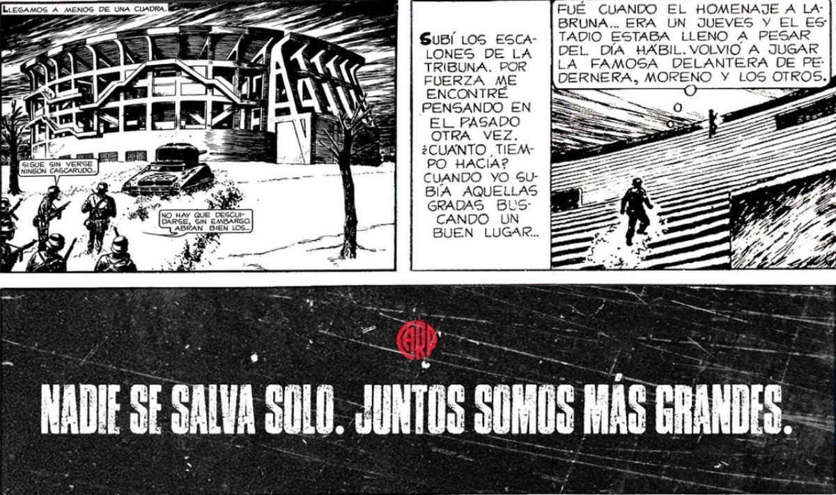 "La batalla de River Plate, las extrañas luces en el Más Monumental. River presente en la historieta original y en la serie del momento. En el corazón de Juan Salvo y el de millones de hinchas y fans de El Eternauta", publicó la institución de Núñez.