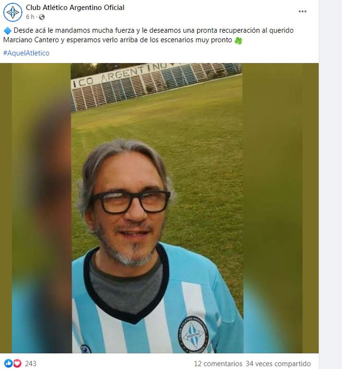 También se expresó el Club Atlético Argentino, del que Marciano es hincha y al que incluso alude en Aún Sigo Cantando en la parte en que dice "Cuando con mi viejo iba a la cancha a ver aquel Aatlético".