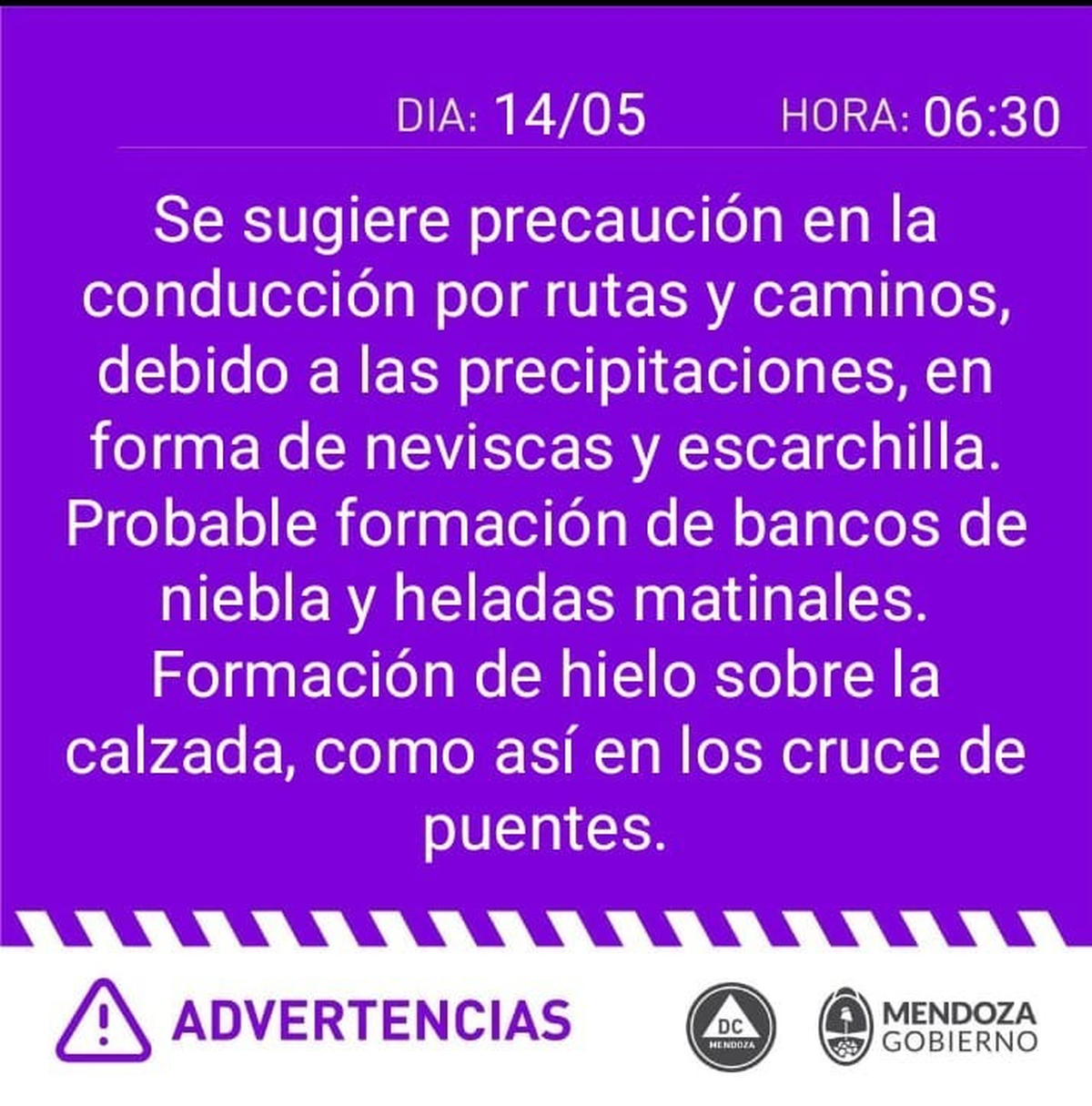 Por las intensas nevadas, hielo y problemas de accesibilidad, y siguiendo las recomendaciones de la Dirección de Defensa Civil, la Dirección General de Escuelas (DGE) informó que este martes 14 de mayo se determinó la suspensión de clases presenciales en el turno mañana en algunos distritos de Mendoza.