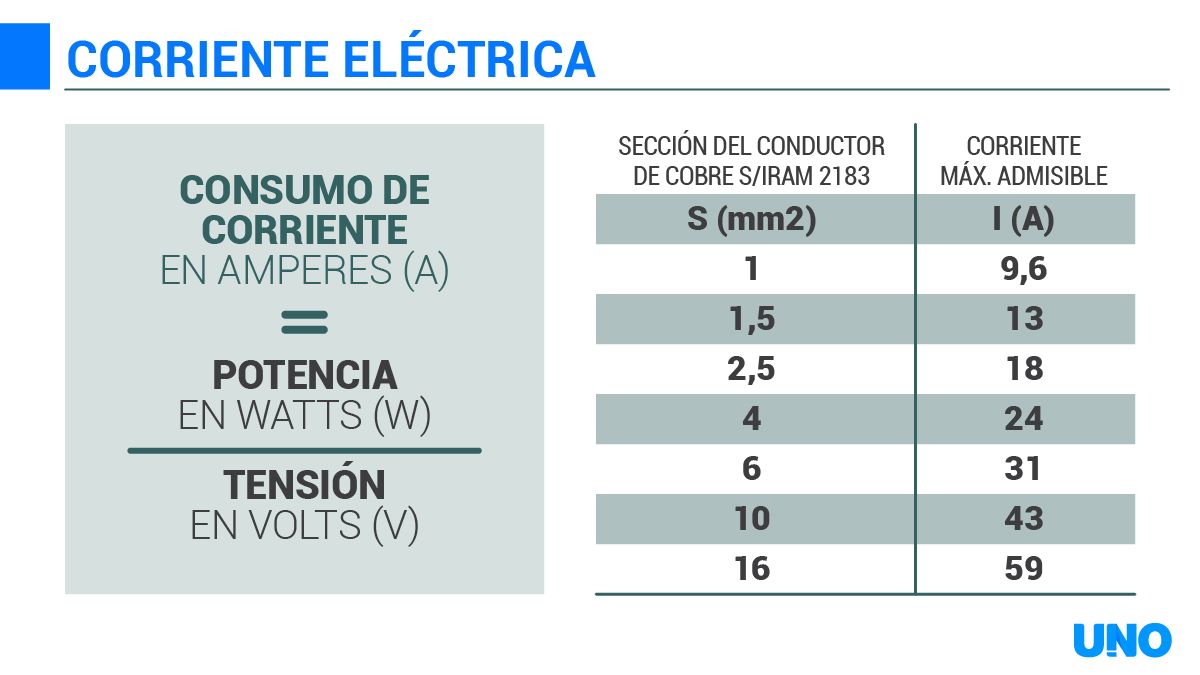 Es bueno destacar algunos conceptos básicos de la electricidad para comprender que no es cuestión de enchufar indiscriminadamente artefactos a una determinada línea, sin tener en cuenta la suma de consumos, y se esta puede ser soportada por los cables. Los cables tienen una limitación a la cantidad de corriente soportada dada por su diámetro o sección.