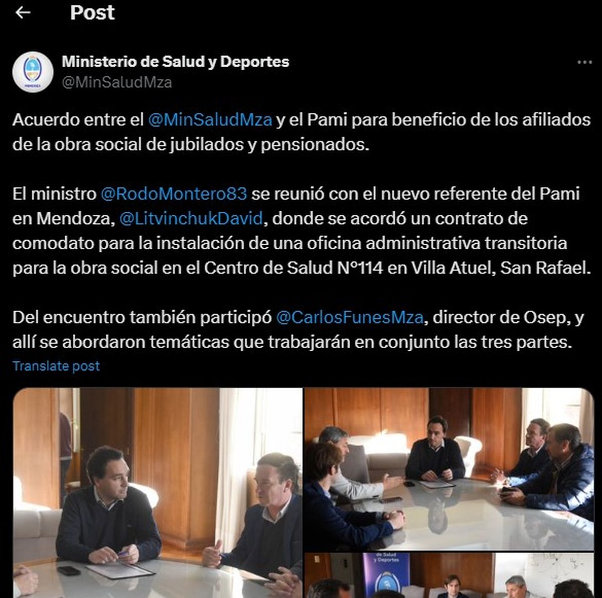 La noticia fue comunicada tras una reunión entre el ministro de Salud de la provincia, Rodolfo Montero, el nuevo titular del PAMI, David Litvinchuk, y el director de la Obra Social de Empleados Públicos (OSEP), Carlos Funes.