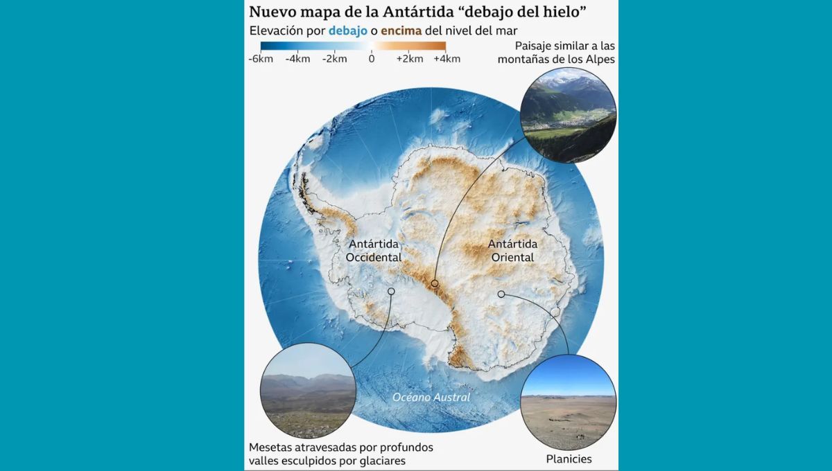 El mapa que revela qué hay debajo del hielo en la Antártida