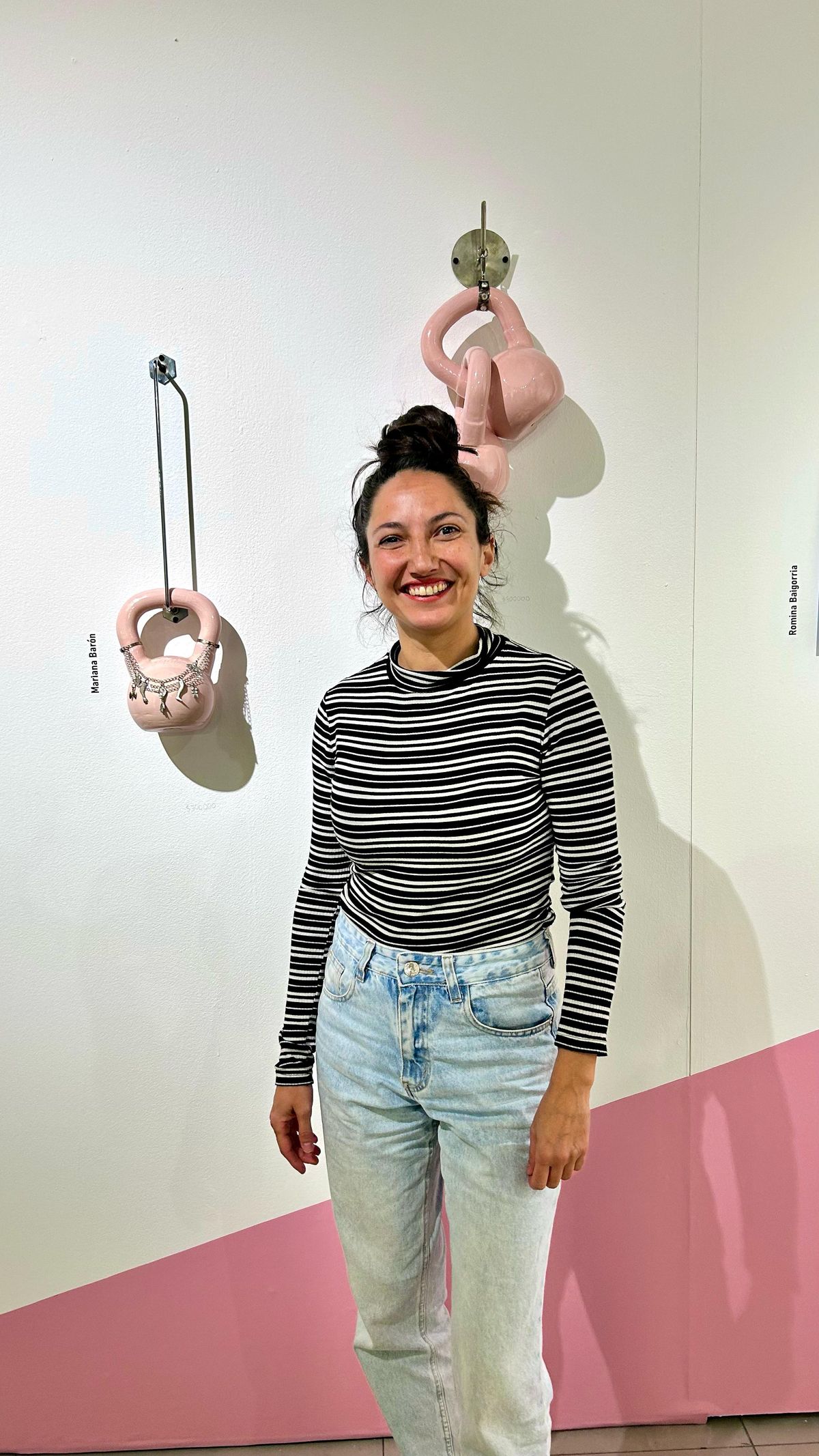 En este caso, la pieza elegida por el MMAMM para su colección permanente es una escultura en cerámica que contiene una pesa que "alude al peso, a una carga física o simbólica; es un objeto que remite a lo pesado, pero está intervenido con elementos que lo embellecen: el color y la incorporación de piezas de orfebrería que realizo a mano", detalló.