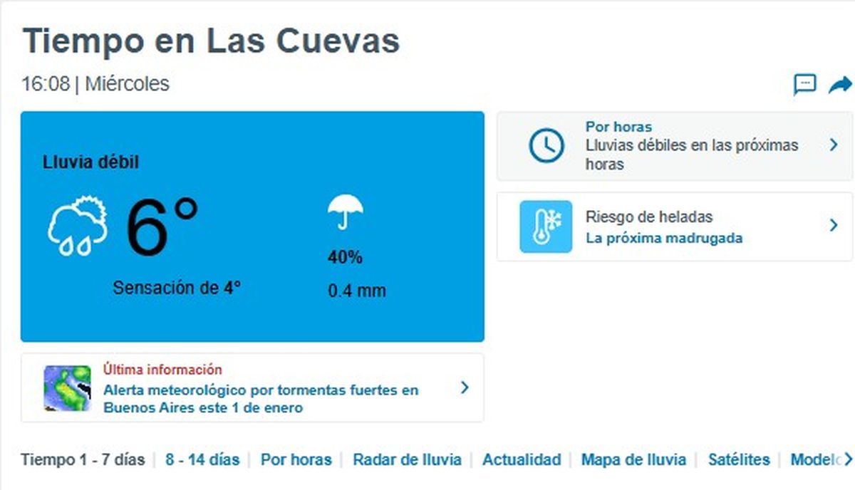 Luego el termómetro irá bajando, hasta llegar a los 0°, a la medianoche, según el portal web de pronóstico del tiempo Meteored.