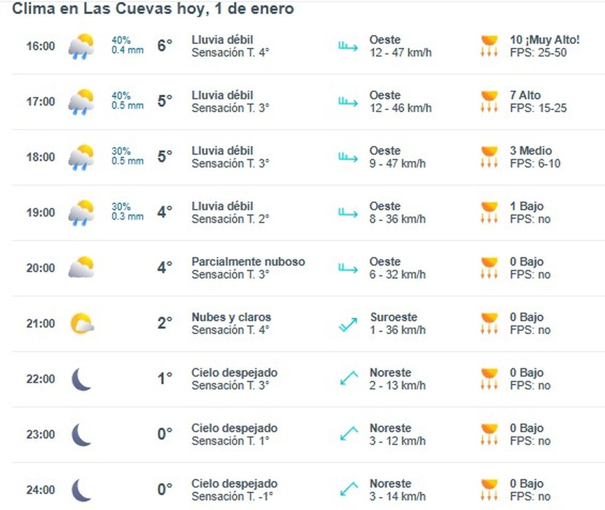 Pronóstico del tiempo para este 1 de enero en el paso a Chile
