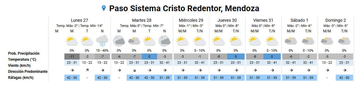 Pronóstico del tiempo en el Paso Cristo Redentor
