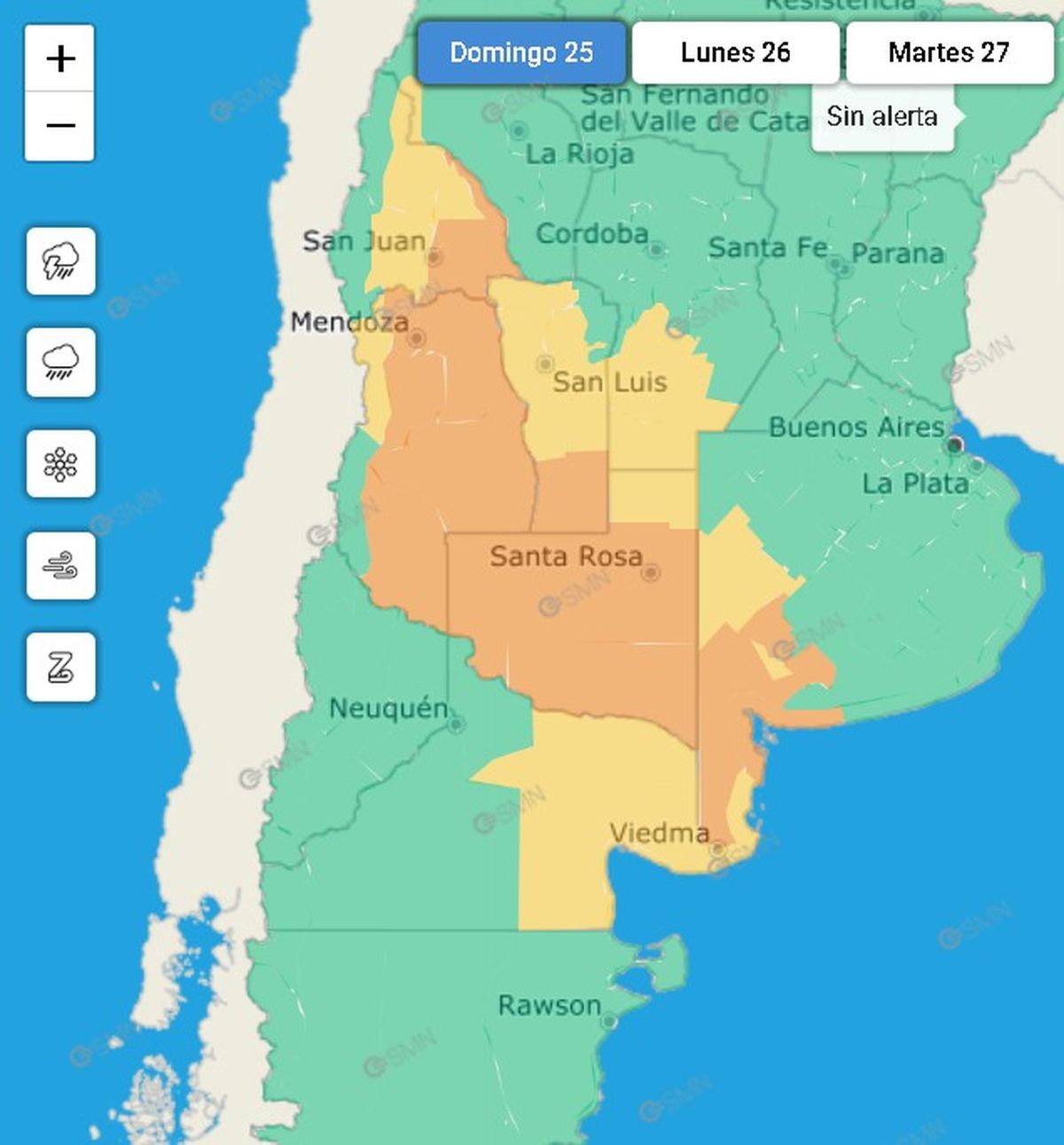 Luego de las tormentas del viernes y del sábado, Mendoza está en alerta naranja por fuertes lluvias pronosticadas para este domingo, con posibilidad de caída de granizo, en prácticamente todo el territorio provincial, según comunicó el Servicio Meteorológico Nacional.