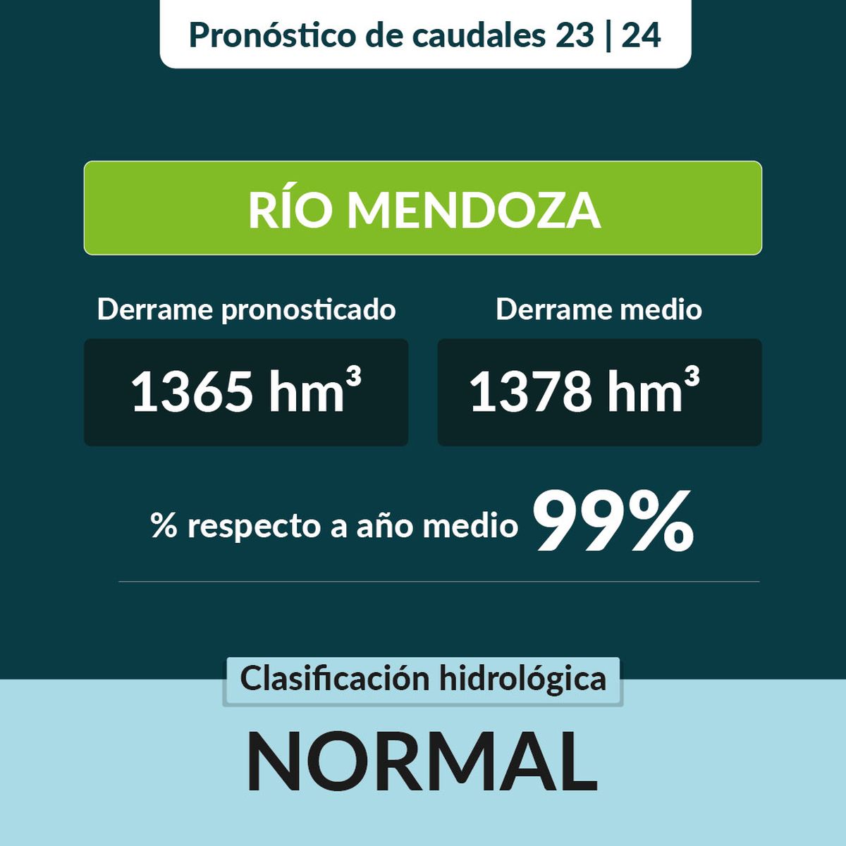 Río Mendoza: clasificación hidrológica NORMAL