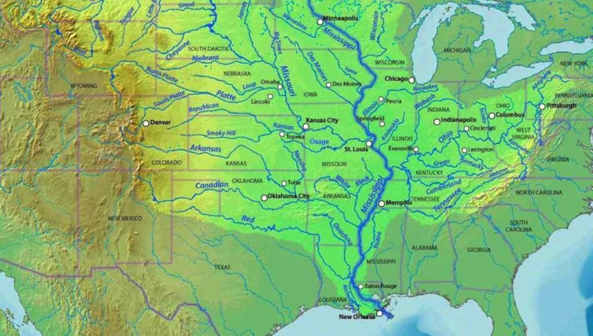 Se trata del río Mississippi, que cruza gran parte de Estados Unidos. Según el National Services Park este nace en el lago Itasca, en el norte del país, y fluye hacia el sur atravesando el centro del territorio continental hasta desembocar en el Golfo de México.