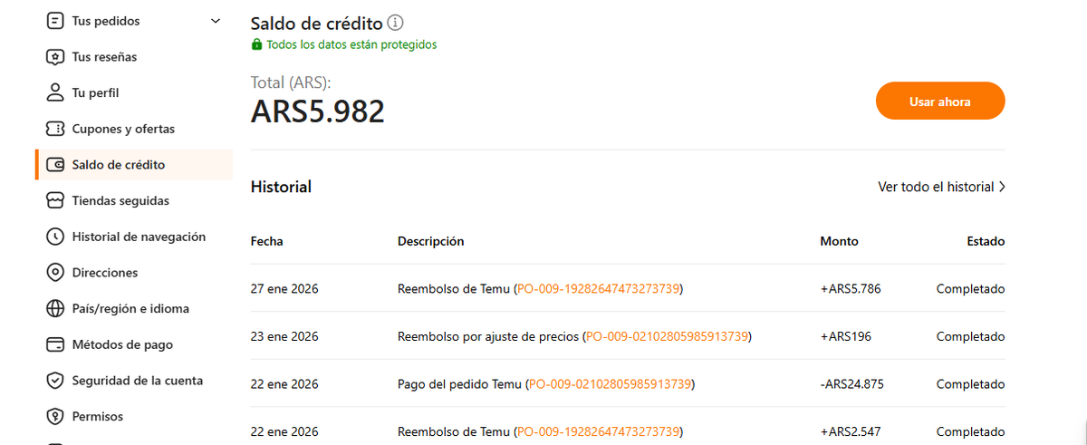 Pero este no es el único modo, ya que se pueden agregar algunos "descuentos especiales" de Temu. Esto se debe a que cuando alguien ya ha realizado una compra, se puede revisar diariamente si esos productos que compró han bajado de precio. Si esto pasa, uno puede solicitarle a Temu que le devuelva lo gastado de más, ya sea a traves de créditos para futuras compras o una devolución a la tarjeta o a lo que se haya utilizado para abonar.