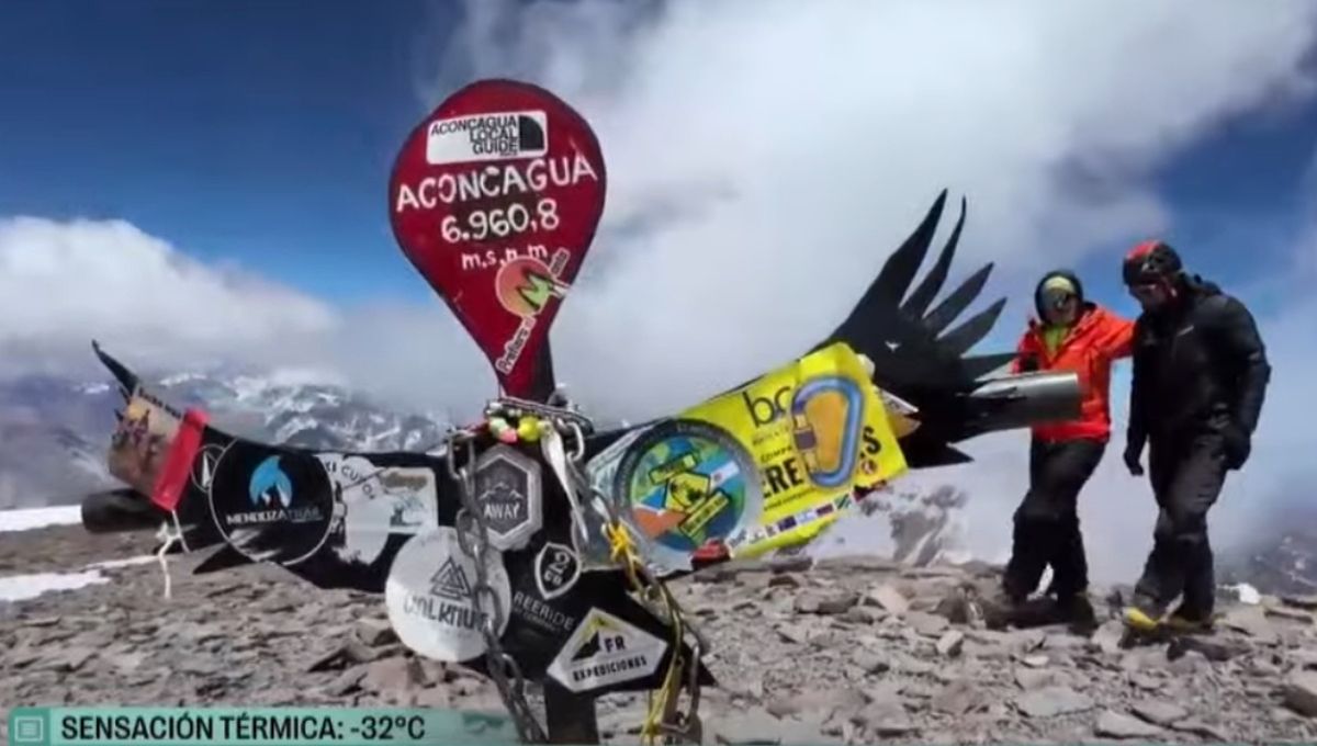 A paso de hombre, con una pendiente hacia arriba de casi un kilómetro, ráfagas de viento que pueden llegar a los 100 kilómetros por hora y una sensación térmica aproximada de 20 grados bajo cero, los expedicionarios de El Siete hicieron cumbre en el Aconcagua, a 6.962 metros de altura, a las 13.10 de este martes 24. Desde la cima del coloso de América iniciaron la transmisión en vivo que se prolongó durante 50 minutos.