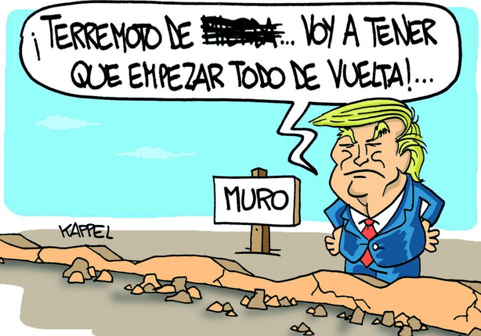 Inicio Sociedad Terremoto en México El humor de Kappel 24 de septiembre de 2017 - 09:48 El terremoto versus Trump Por UNO Temas relacionados: Terremoto en México El humor de Kappel Humor Donald Trump las más leídas Estados Unidos Quién es el hombre que inició el tiroteo en la cena de periodistas a la que asistió Donald Trump Por Paula Alonso ¿La sabes? Cuál es la diferencia entre una bicisenda y una ciclovía Por Daniel Calivares Rincones de Mendoza Qué son las cajas ocultas del Pasaje San Martín y para qué se usaban Por Facundo García Después de varias horas Se entregó el conductor que atropelló a un ciclista en Las Heras, lo mató y huyó Por Paola Alé Lo que se lee ahora Sociedad Quién es el hombre que inició el tiroteo en la cena de periodistas a la que asistió Donald Trump Te puede interesar Sismos Japón en alerta máxima: terremoto de 7,5 grados activa evacuaciones por amenaza de tsunami Muy sencillo Marcas de vasos y botellas en la madera: el truco para eliminarlas fácilmente Libros Gonzalo Garcés y los relatos sagrados: "La Biblia es bilardista. Te dice que tenés que juzgar por los resultados"