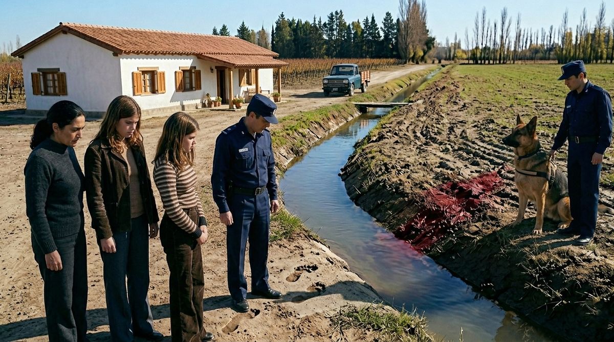 Llevaron un perro, que rápidamente detecto el itinerario del fugitivo. Había atravesado una acequia de riego y corrido por la finca del vecino, pero como habían regado esa noche, el barro había borrado las huellas y el rastro, al menos para el perro que se había quedado detenido, olfateando el aire, ciego a cualquier estímulo. Pero la tierra y el agua no habían borrado la sangre.