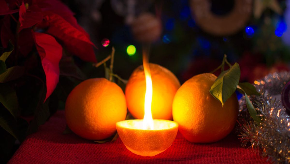 La naranja es un cítrico que para muchas personas posee un olor delicioso. Es así que un excelente truco casero para aprovechar este ingrediente es elaborar una vela aromática para ambientar el hogar. Para ello, corta la parte superior de la naranja y extrae su pulpa sin romper la cáscara. Luego rellena hasta la mitad con cera para velas y ponle una mecha.