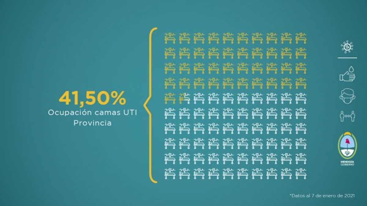 Otra información que surge del informe y enciende alarmas, es la ocupación de camas de terapia intensiva la cual ha acompañado el alza en los contagios y pasó del 37,11% al 50% en el Gran Mendoza.