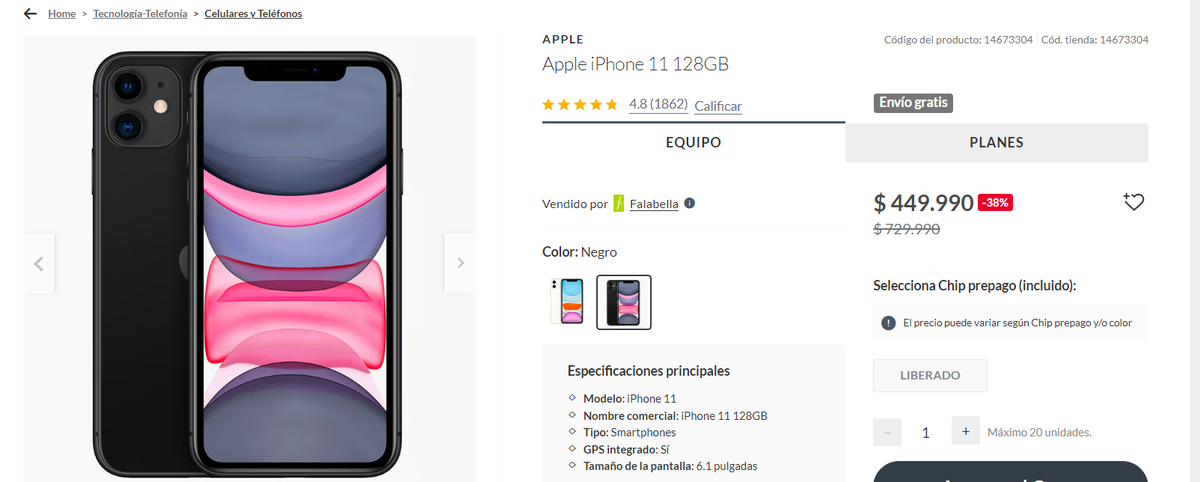 - Iphone 11 128 GB en Argentina cuesta $ 1.229.977 y en Chile se puede conseguir, en oferta, a $ 439.561,48