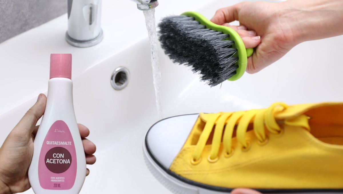 Lo cierto es que la acetona no solo es efectiva para eliminar el esmalte de uñas, sino que, además, tiene un poder disolvente para los restos de suciedad incrustada y marcas en la goma o plástico de la zapatilla.