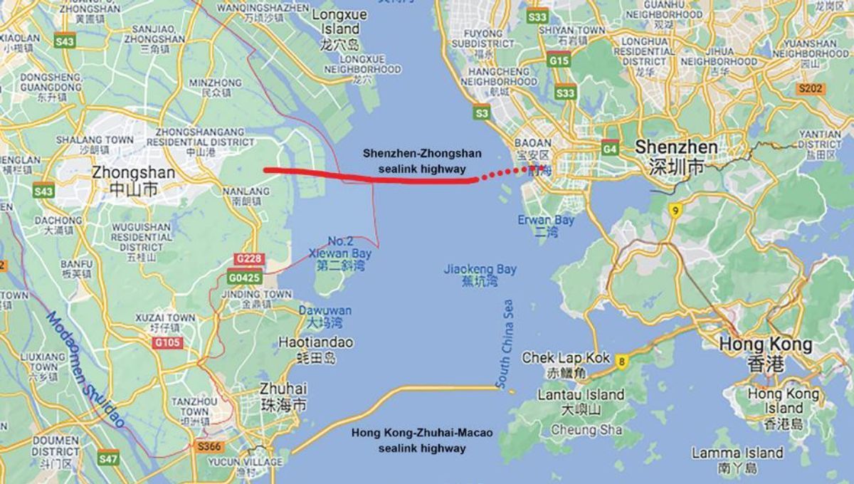 Este túnel forma parte de un enlace de unos 24 km que conecta los núcleos urbanos de Shenzhen y Zhongshan, e incluye además dos islas artificiales y dos puentes en un conjunto monumental. La sección sumergida del túnel llega a 55,6 metros en su punto más ancho. Esta construcción alberga ocho carriles (dos sentidos) y está diseñado como un tubo de inmersión de acero y hormigón, posicionándose como líder mundial en su categoría.