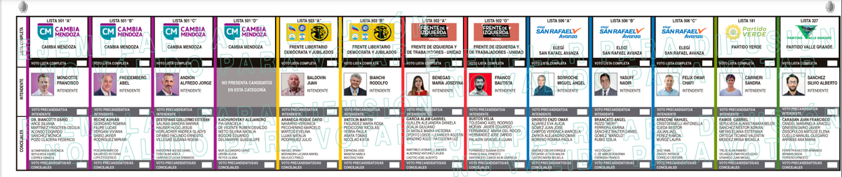 En las últimas horas se difundieron los modelos de boleta única que se usarán en el día de la elección propia de cada departamento. En el caso del municipio de San Rafael, los vecinos acudirán el 30 de abril y se encontrarán con las siguientes opciones para votar: