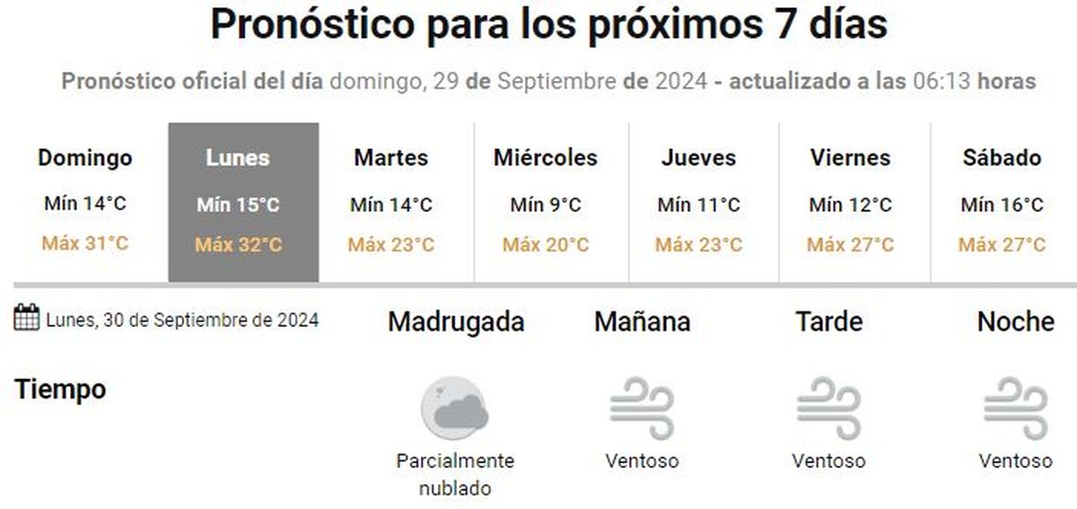 Se espera que el viento tenga velocidades entre 35 y 50 km/h con ráfagas que pueden superar los 90 km/h, por lo que para este lunes el alerta es Naranja. "Este fenómeno podría provocar reducción de la visibilidad, un aumento repentino de la temperatura y condiciones de humedad relativa muy baja", explicaron.