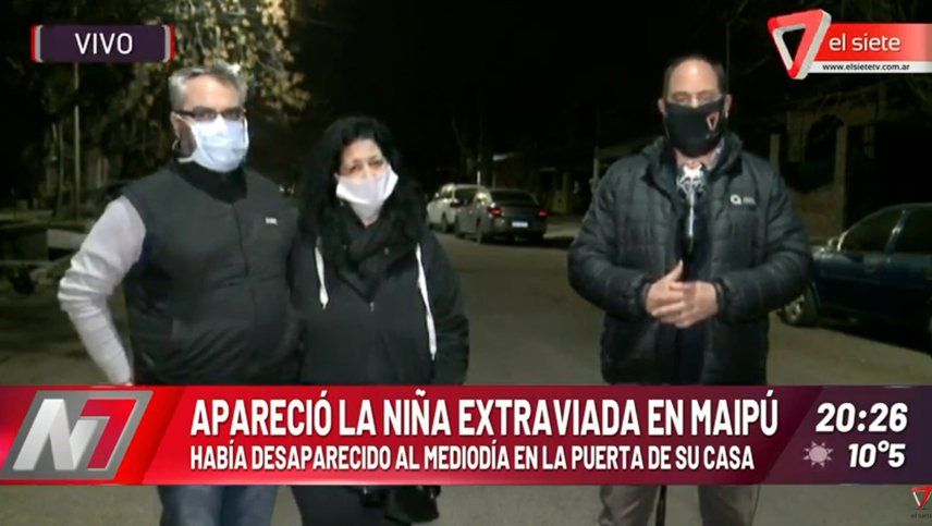 Ellos contaron que gracias a la enorme repercusión en los medios de comunicación y en las redes sociales una señora que ellos no conocían vio a la niña caminando sola por Maipú y la rescató.
