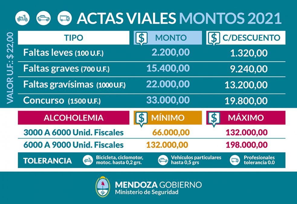 Con respecto a las infracciones, Hómola recordó que a partir del 1 de enero entró en vigencia la nueva ley impositiva que incrementa el valor de las unidades fiscales, pasó de $17 a $22. Esto implica que el costo de las multas subieran considerablemente.
