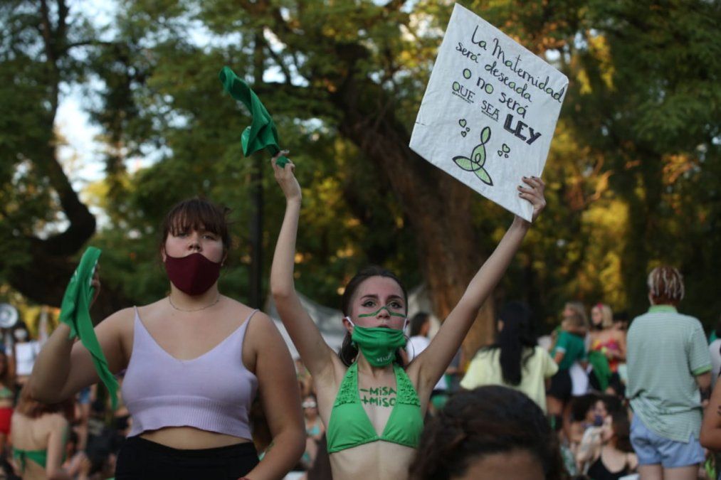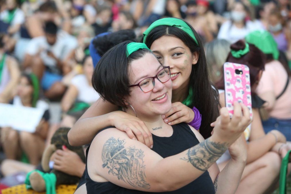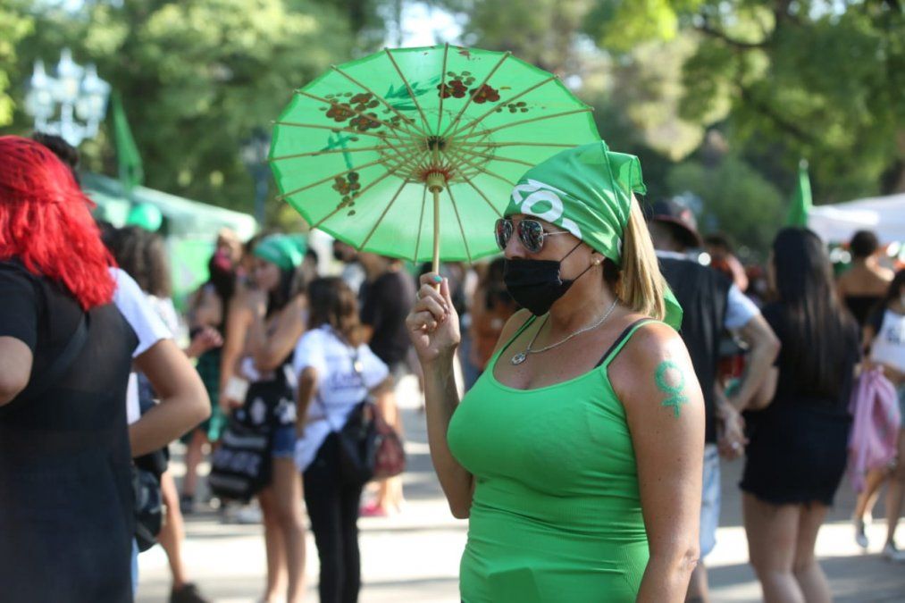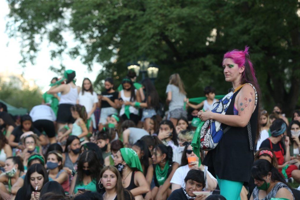 A pesar de las altísimas temperaturas, la "marea verde", como se han dado a llamar desde el 2018, se congregó frente a la Legislatura provincial para seguir en vivo la sesión. Tal como ocurrió hace dos años, se espera que los militantes organizaron una vigilia hasta la hora de la votación.