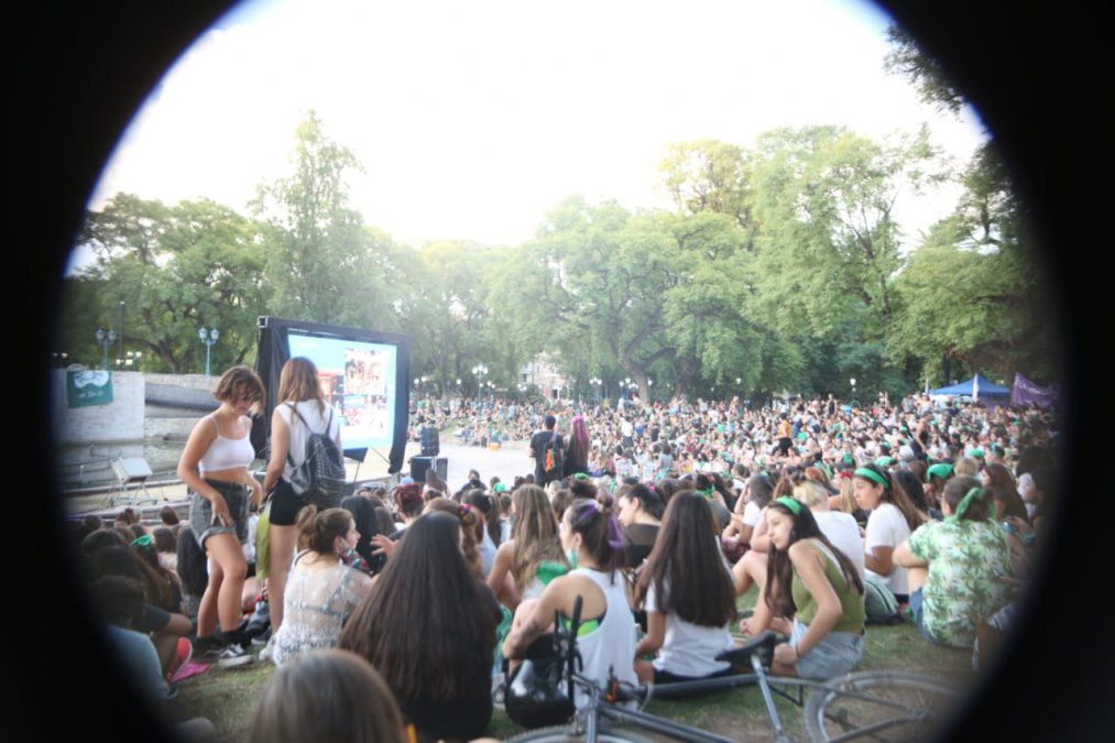 Desde las 16, hora en la que se inició el debate en el Congreso del proyecto que busca legalizar el aborto en Argentina, militantes a favor de la interrupción voluntaria del embarazo se dieron cita en la plaza Independencia de Mendoza siguiendo a través de una pantalla lo que ocurría en el Senado.
