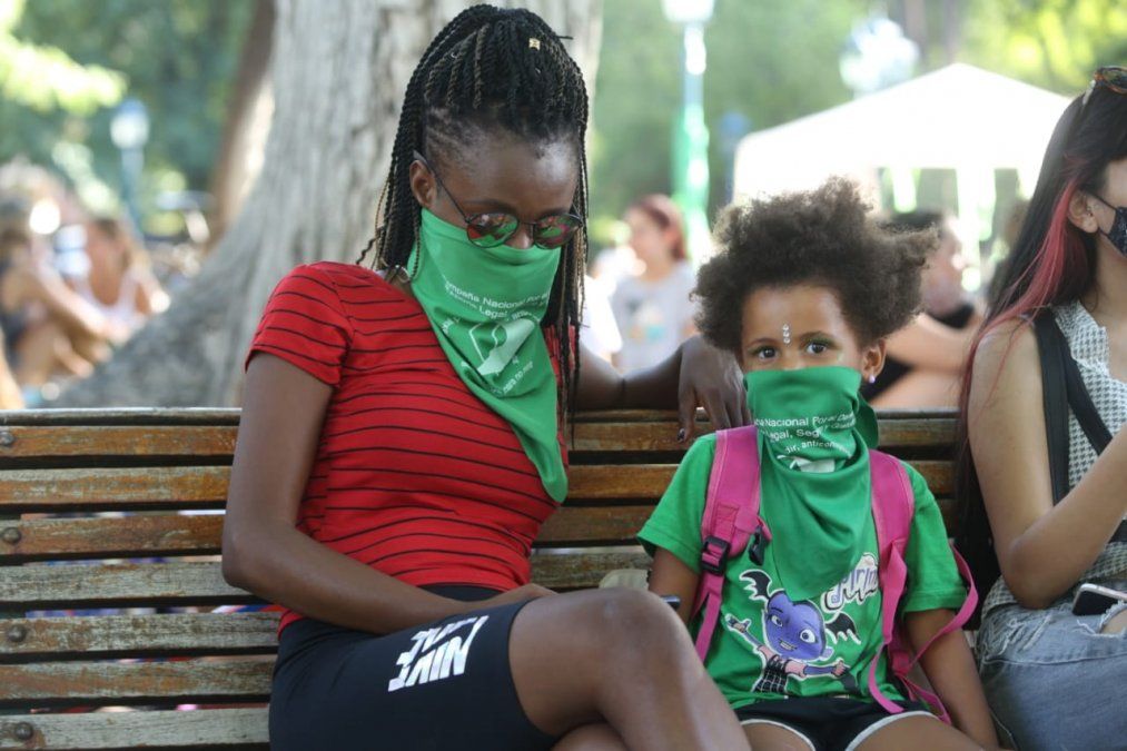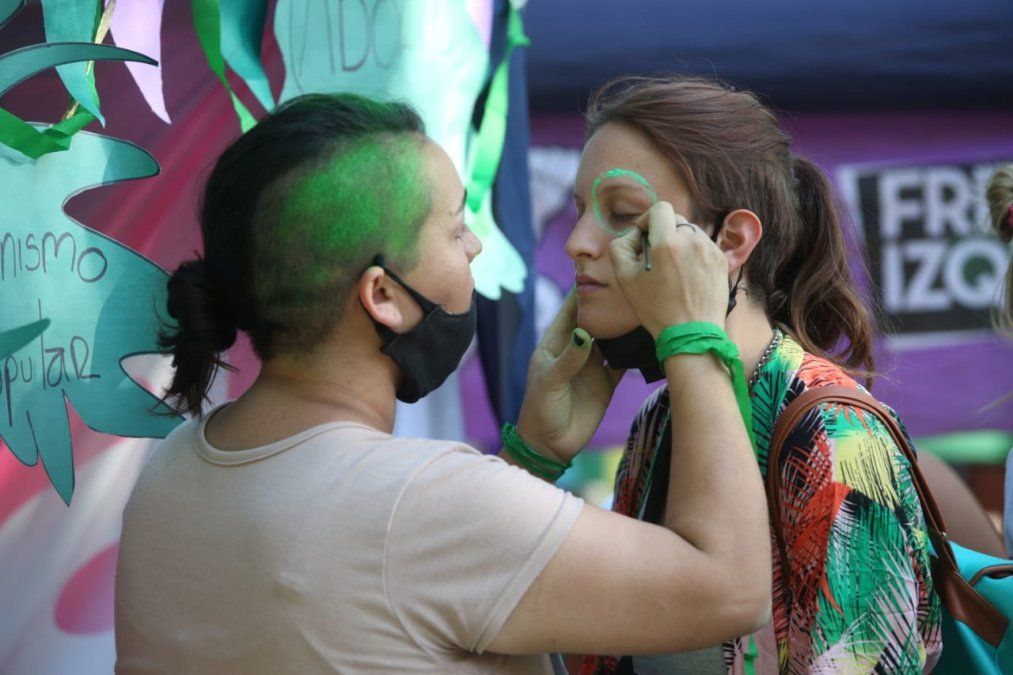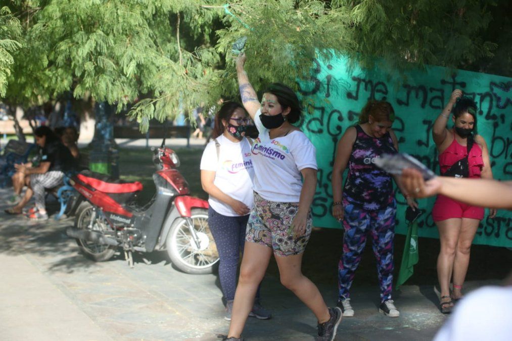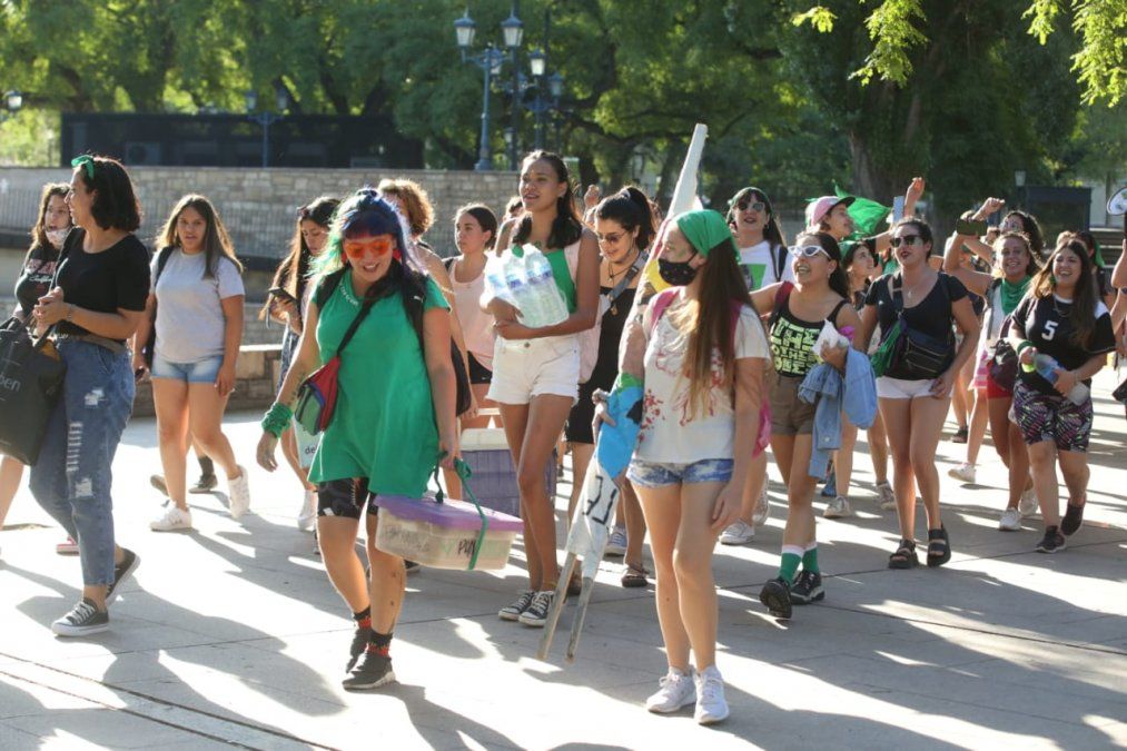 Los pañuelos, banderas, carteles y pinturas no faltaron y llenaron de color este punto neurálgico de Mendoza.