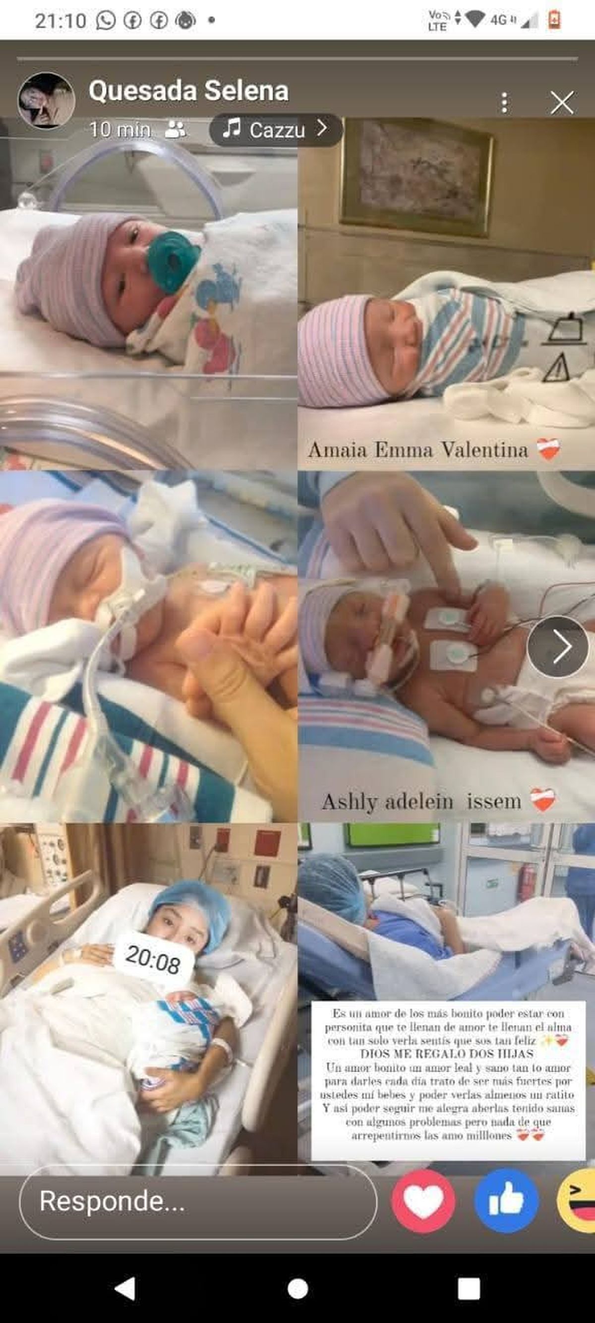 "Yo he rogado para que no dieran información y poder pasar tranquila mi proceso, sin estar al lado de personas que si no les dijera lo que tengo no estarían conmigo (...) Mis bebés son lo único bueno que tengo (...) No quiero responder aún los mensajes en estos momentos quiero no pensar en lo que vendrá y disfrutar el momento", escribió.