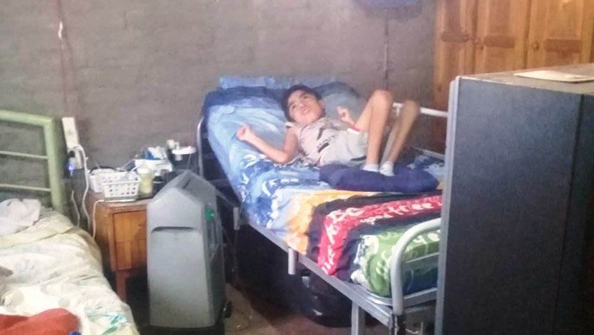 Leonel recibe atención médica desde hace tiempo. Dejó de hablar y caminar hace un año, se alimenta por sonda y necesita oxígeno para respirar. Su mamá, Gabriela Celeste Zárate (31) es madre sola y tiene otros dos hijos, Natasha (7) e Isaías (2).