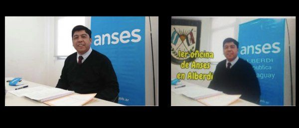 A través de la búsqueda inversa de imágenes de Google se pudo determinar que la imagen de los posteos está modificada: se tomó una foto de Adrián Mendieta, titular de la delegación de la ANSES en Jujuy, y se le agregó un escudo con las banderas de Paraguay y la Argentina, un texto que dice “1er oficina de Anses en Alberdi” (sic) en amarillo, y, en el cartel de atrás, la leyenda “Alberdi, República de Paraguay”.