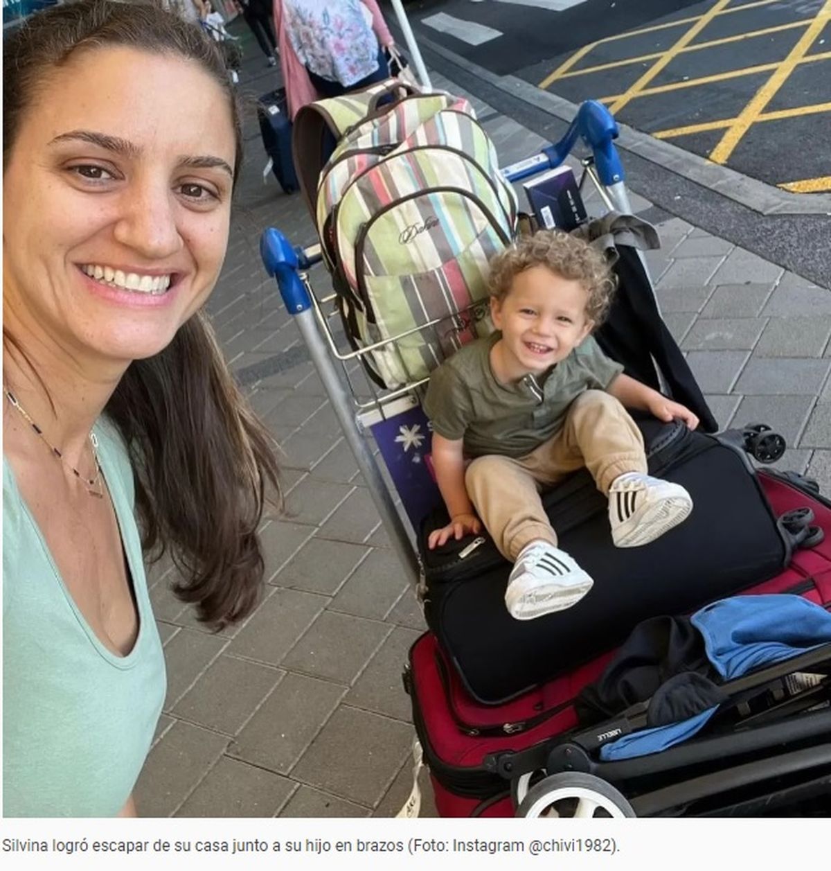 “Usé la luz de mi celular para caminar dentro de mi casa y armar una valija. Mi ex me apuró para decirme que teníamos que irnos, así que dejé la valija y busqué una mochila más chica: puse los pasaportes, pañales, comida del nene y un rollo de papel higiénico”, comentó Silvina al recordar ese triste momento.