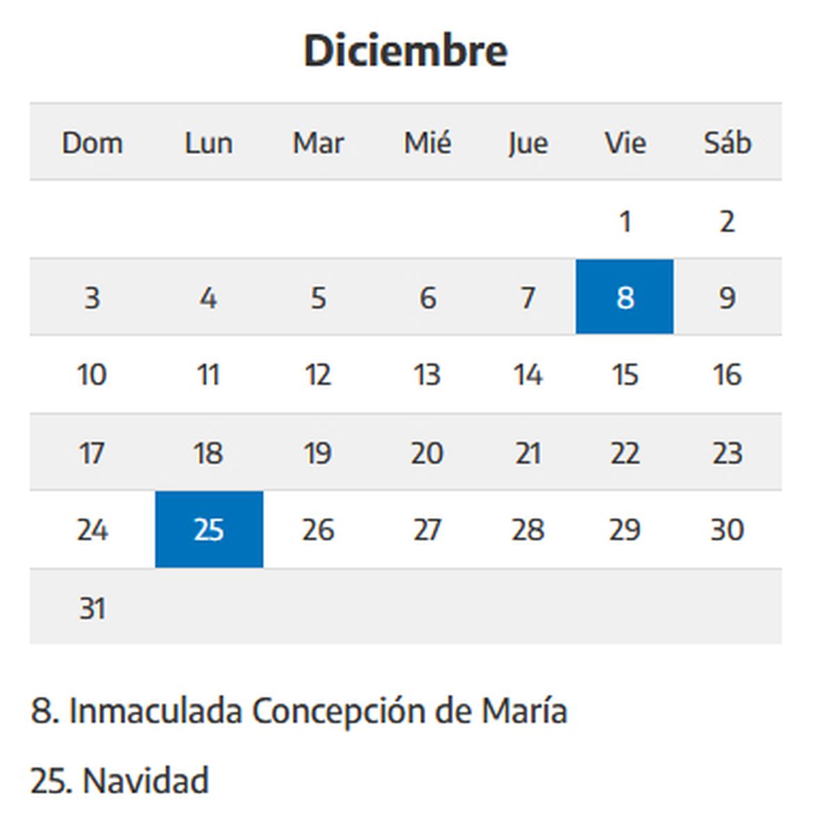 En diciembre de 2023 habrá dos fines de semana largos ya que el 8 de diciembre será viernes y el 25 de diciembre caerá en lunes.