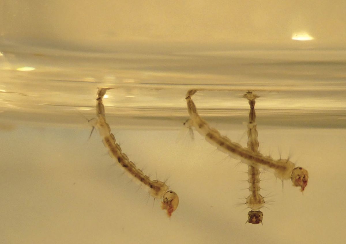 En otros casos, las hembras mueren pero los huevos permanecen latentes hasta la llegada del calor. Este proceso se llama quiescencia. Las larvas de los mosquitos están bajo el agua.