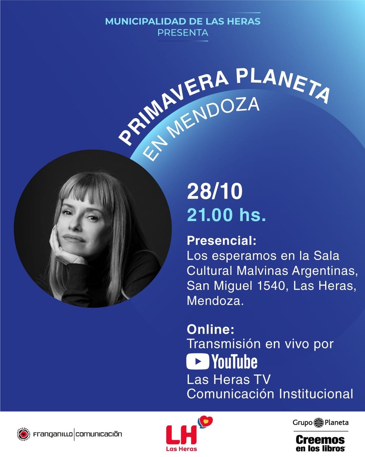 Primavera Planeta en Mendoza” cuenta con la producción general de Franganillo / Comunicación y el patrocinio de la Municipalidad de Las Heras, Mendoza.