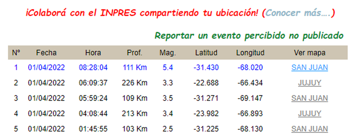 Según agrega el Inpres, el epicentro fue a 47 km al Este de la capital de San Juan y a 177 km al Noroeste de Mendoza; 35 km al Noroeste de Caucete.