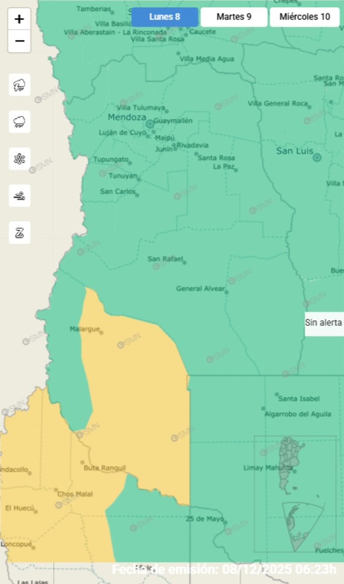 El Servicio Meteorológico Nacional emitió un alerta por la llegada de fuertes tormentas en el departamento de Malargüe.