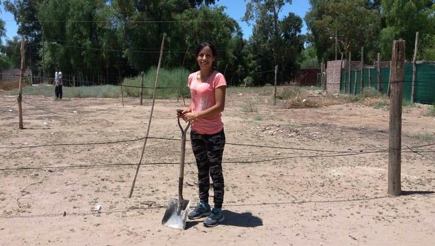 La foto está sacada este fin de semana en el loteo del Barrio Las Viñas, en El Algarrobal. Allí, entre la generosidad de las dueñas del loteo, que donaron esa parcela, y la solidaridad de los vecinos, que están intentando aportar trabajo y materiales dentro de sus posibilidades, Gabriela Celeste Zárate está empezando a hacer las bases para levantar su casa.